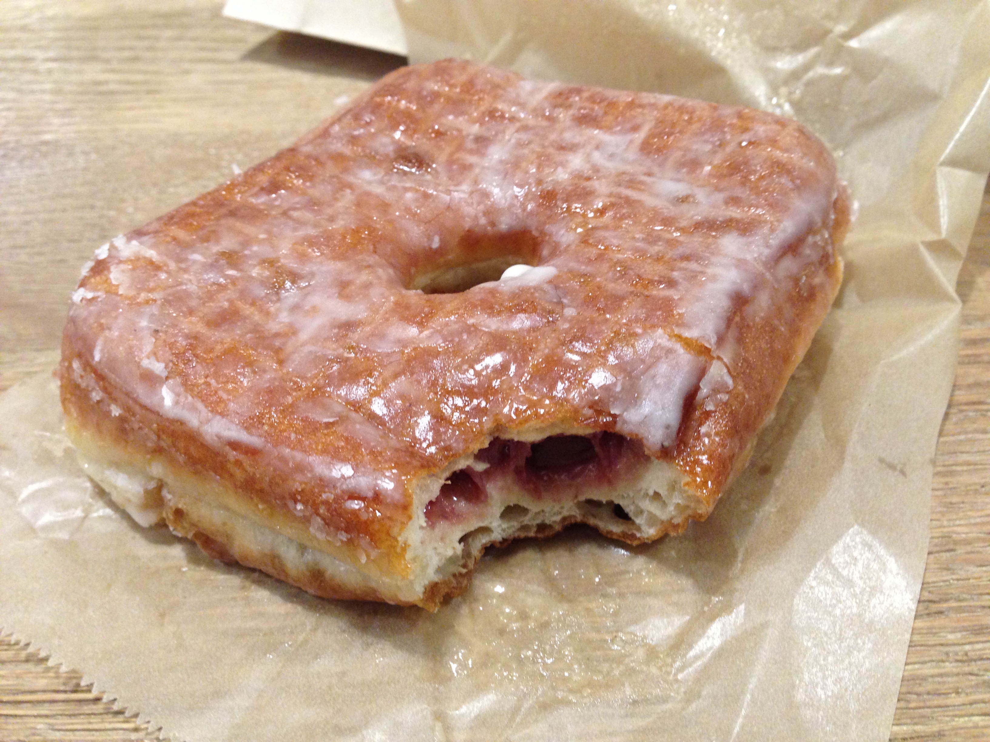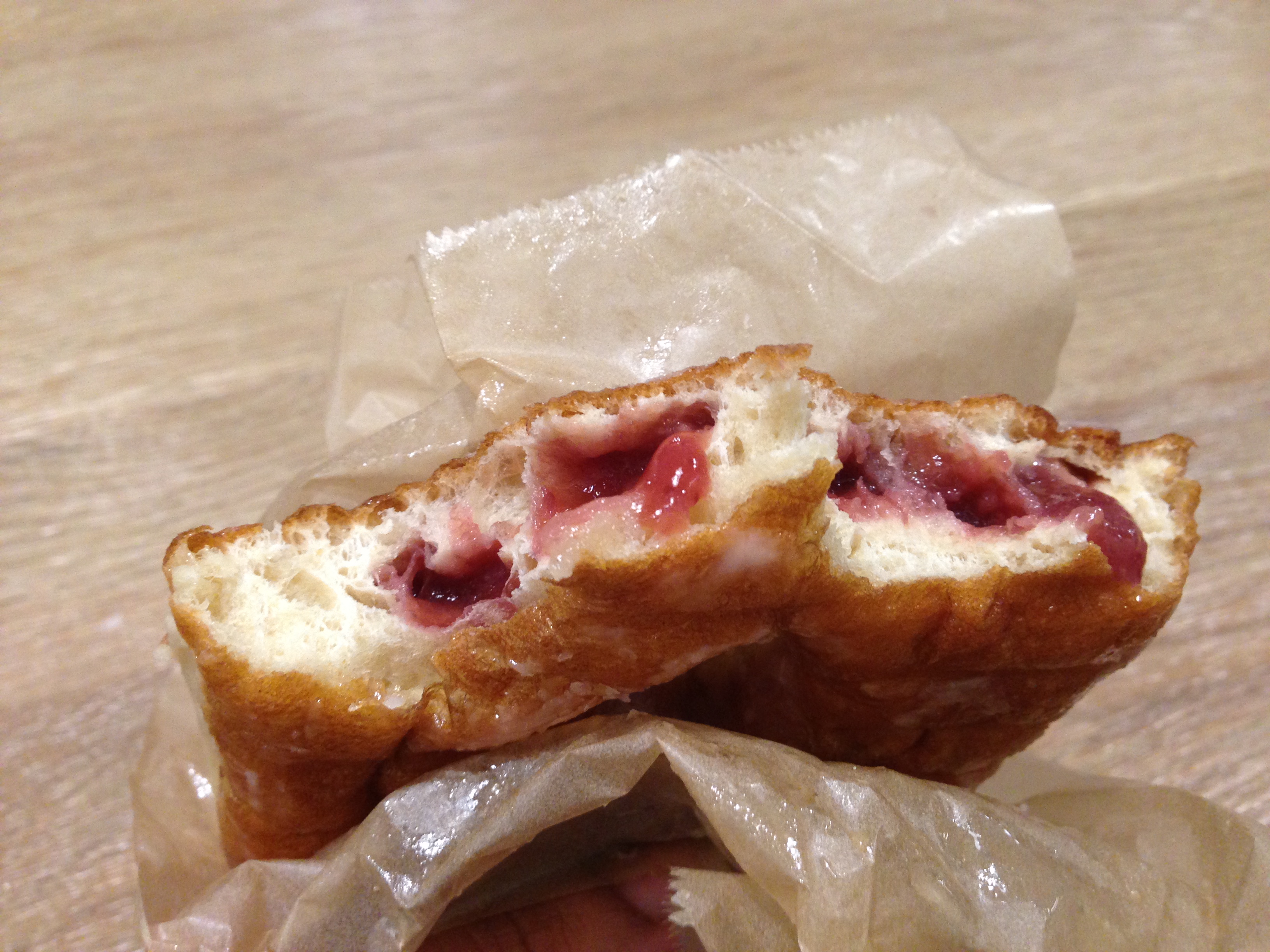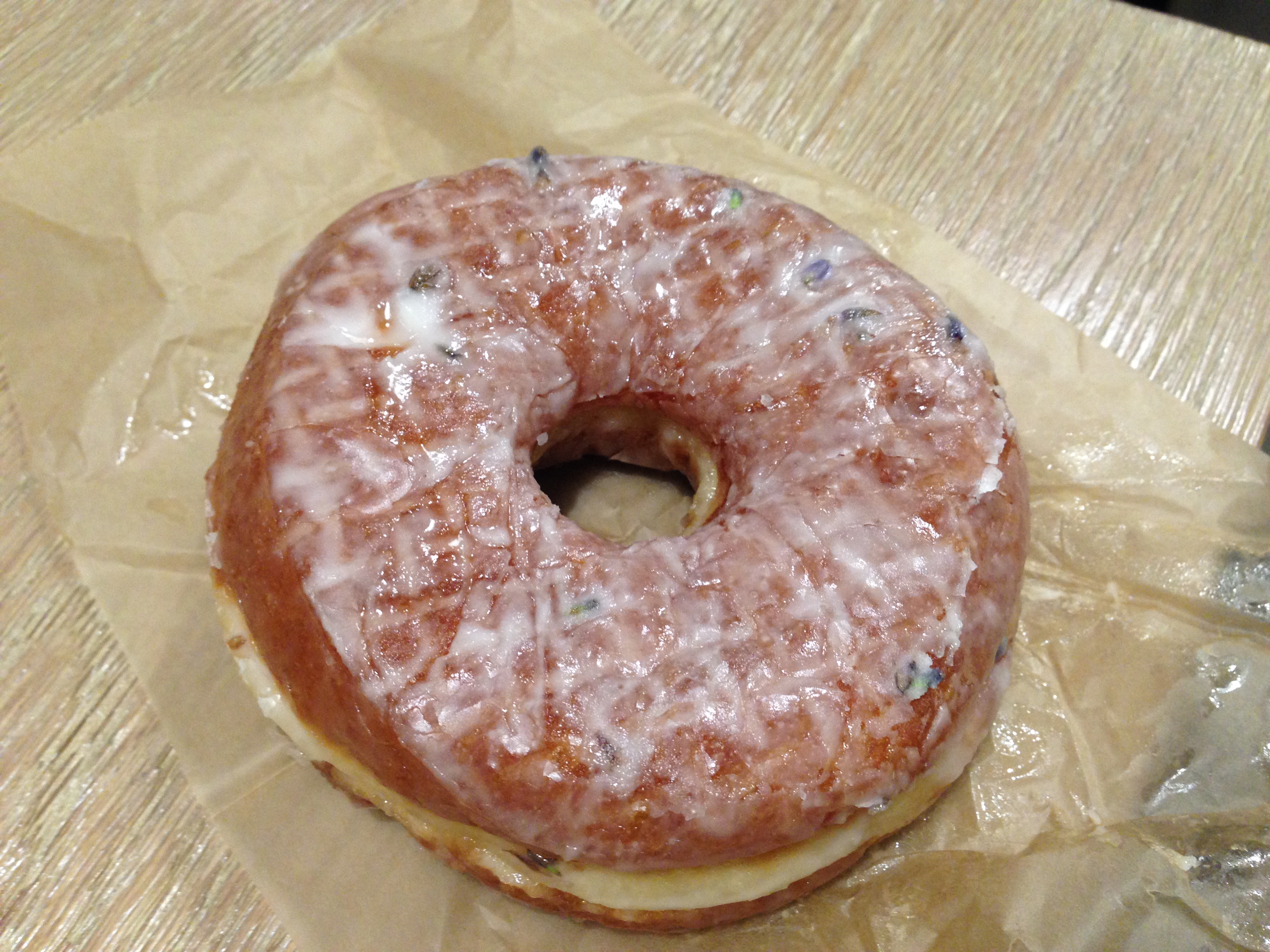 My first doughnut I tried was the lavender yeast doughnut. This is not a filled doughnut. It has a floral taste but not over powering. When I bought it, I was concerned if it was going to taste like biting into potpourri. I was pleasantly surprised. It has real lavender buds lightly sprinkled over the doughnut. Picture located below.