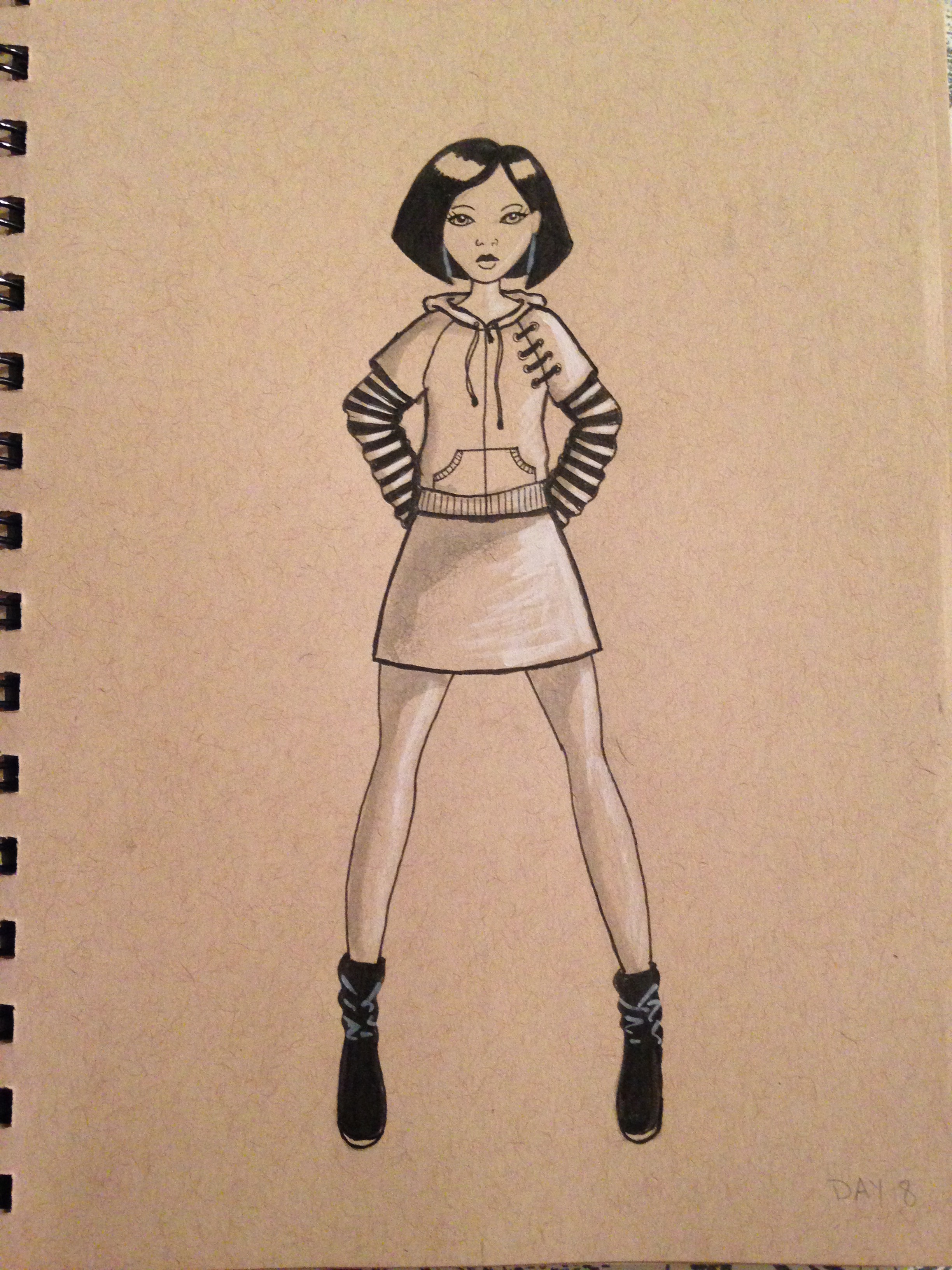Day 8 – I didn’t think about the fantasy element until after this sketch, but she still look fierce. I also started experimenting with ink washes.