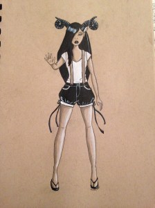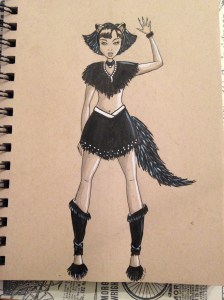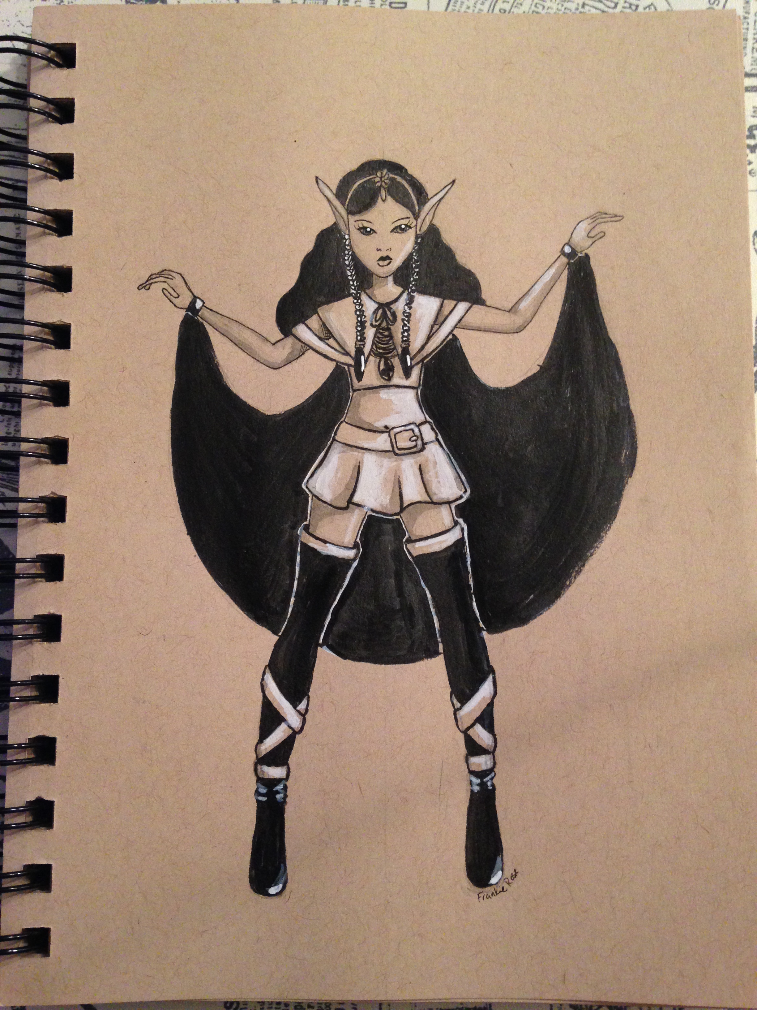 Day 9 – For this one I was thinking about bats and elves. I didn’t want to be so literal so I used her cape as figurative bat wings.